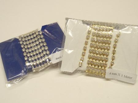 Crystal diamante on a silver or gold chain Stunning around the tiers of a wedding cake. 4mm crystal size in a 1 metre length