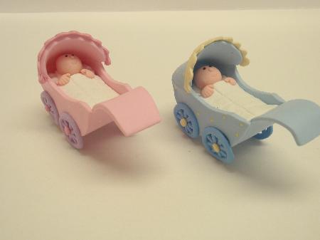 Baby in pram cake top decoration. 5.5 cm tall.