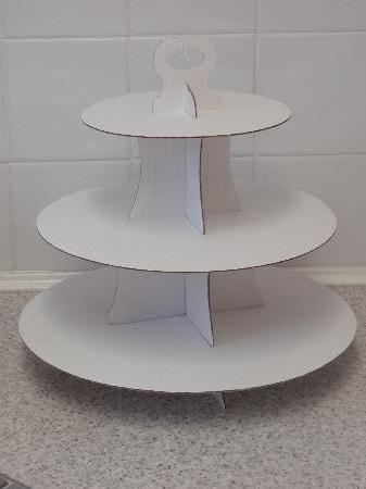 Three tier cupcake stand in white, holds 40 cupcakes. 36cm tall.