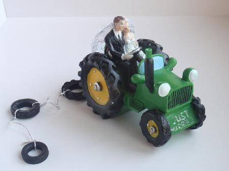 Bride and Groom on Green Tractor - (Bdgrmtractorg)